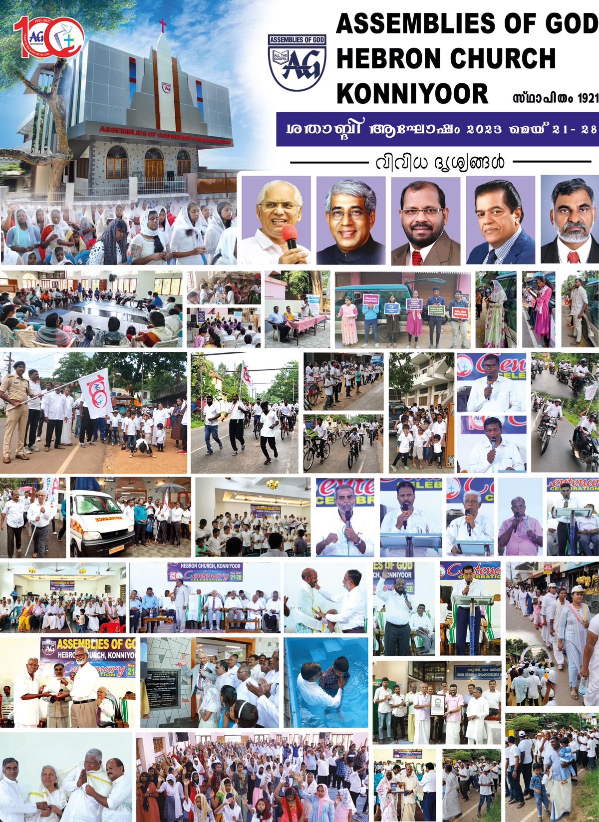 Hebron Assemblies of God Church, Konniyoor, Poovachal, Thiruvananthapuram, Kerala, is one of the oldest churches in Kerala, India. The move of God is evident in Healing and Deliverance at Hebron. The Grace of God is evident in the blessing and answered prayers at Hebron. A place where unadulterated teaching from the Word of God and strict adherence to the doctrines of the Holy Bible is a never compromised. A place where the principles, policies and kingdom values are held in high esteem. On this beautiful occasion we together can show our gratitude towards God for celebrating centenary at Hebron church
